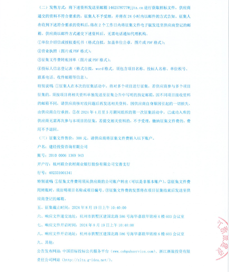 浙江浙旅建設(shè)有限公司分供商庫(智慧旅游)補(bǔ)充征集公告