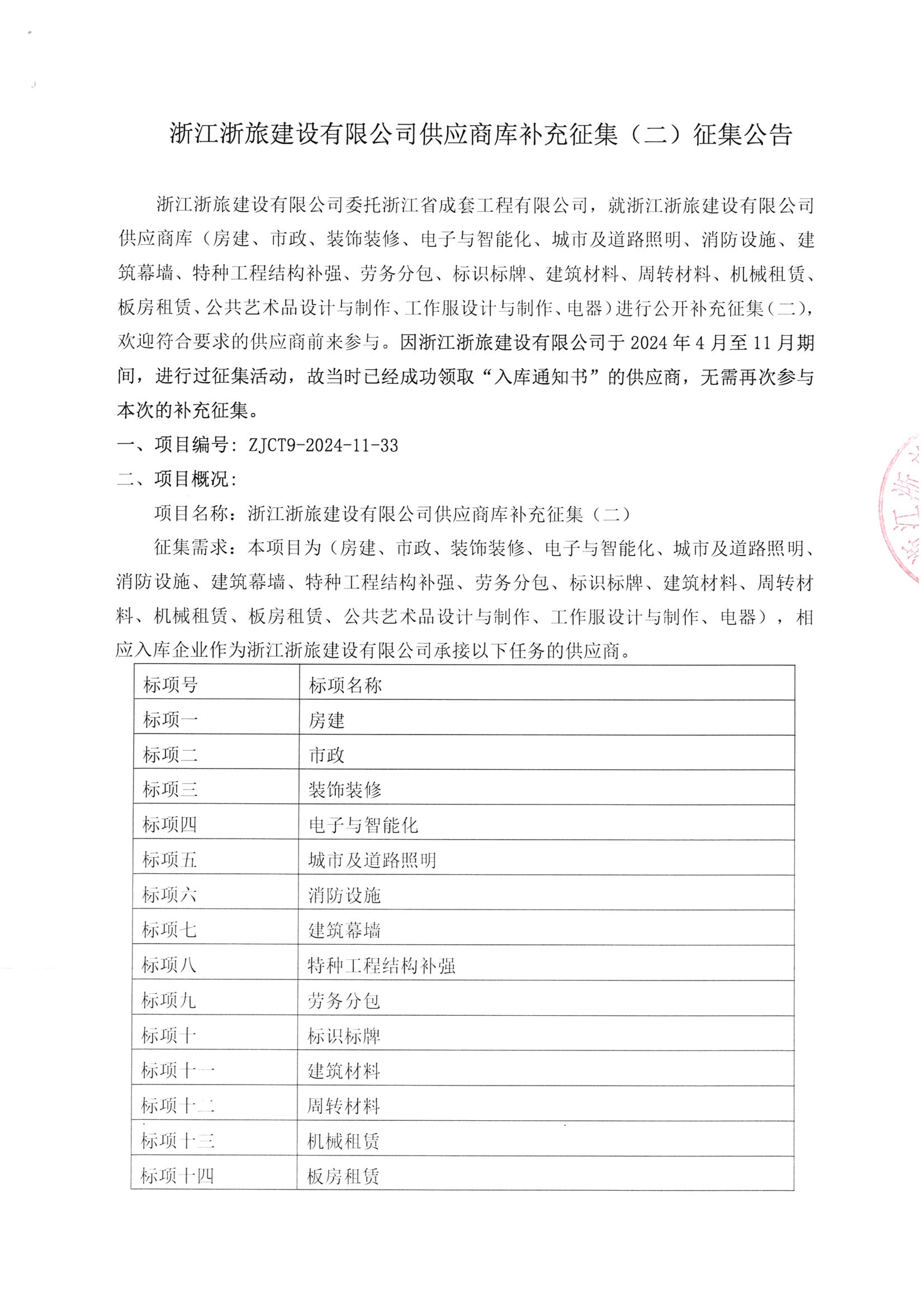 浙江浙旅建設(shè)有限公司供應(yīng)商庫補(bǔ)充征集(二)征集公告