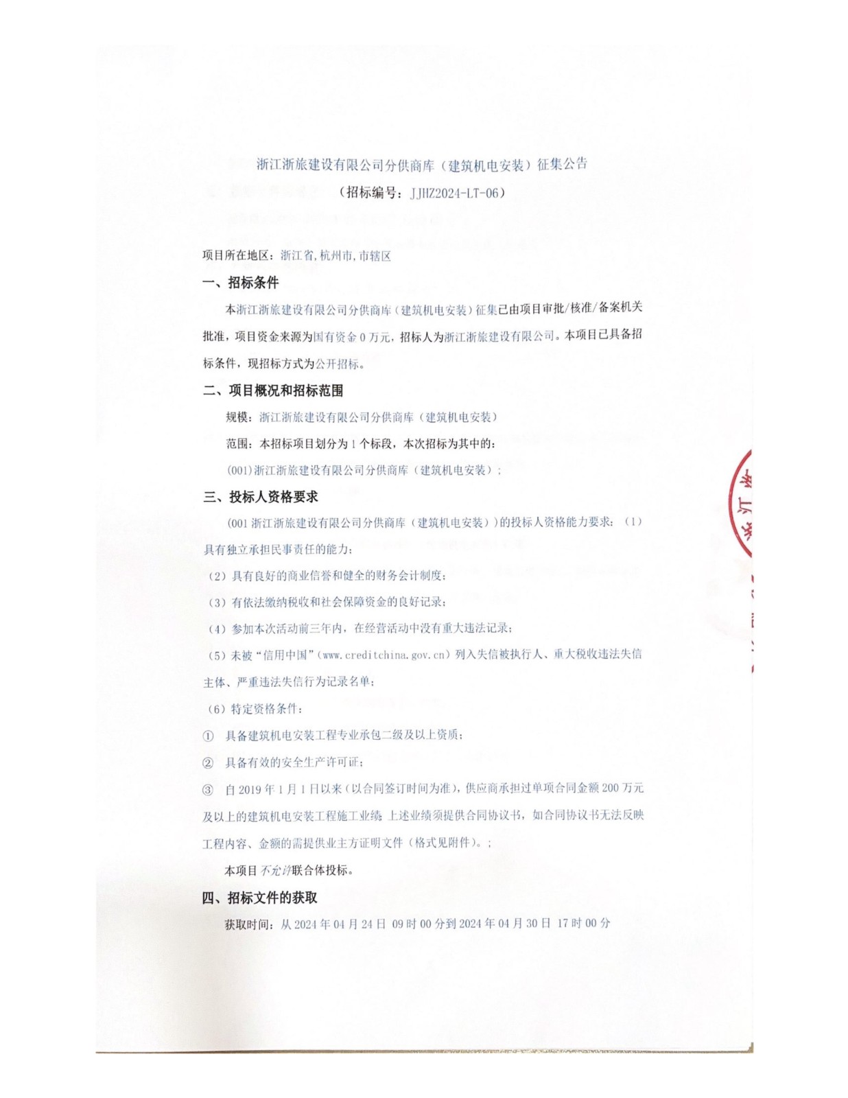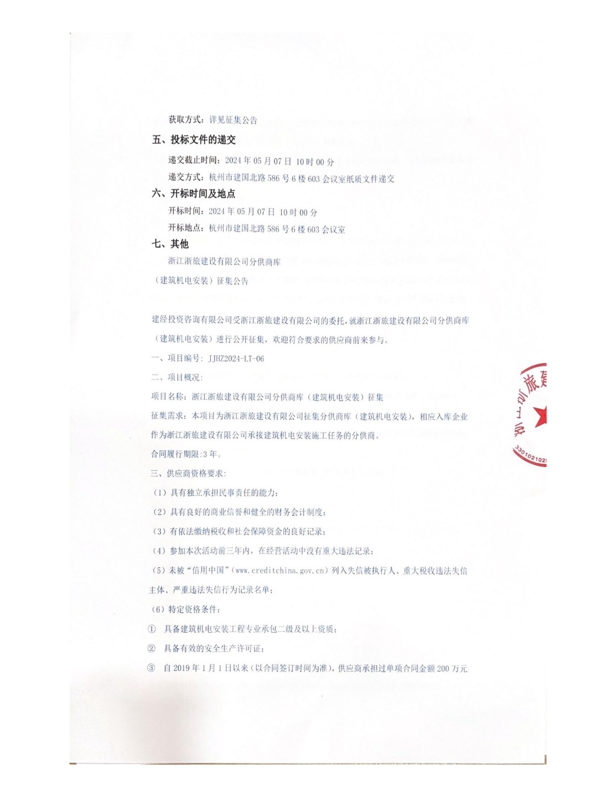 浙江浙旅建設(shè)有限公司分供商庫(kù)(建筑機(jī)電安裝)征集公告